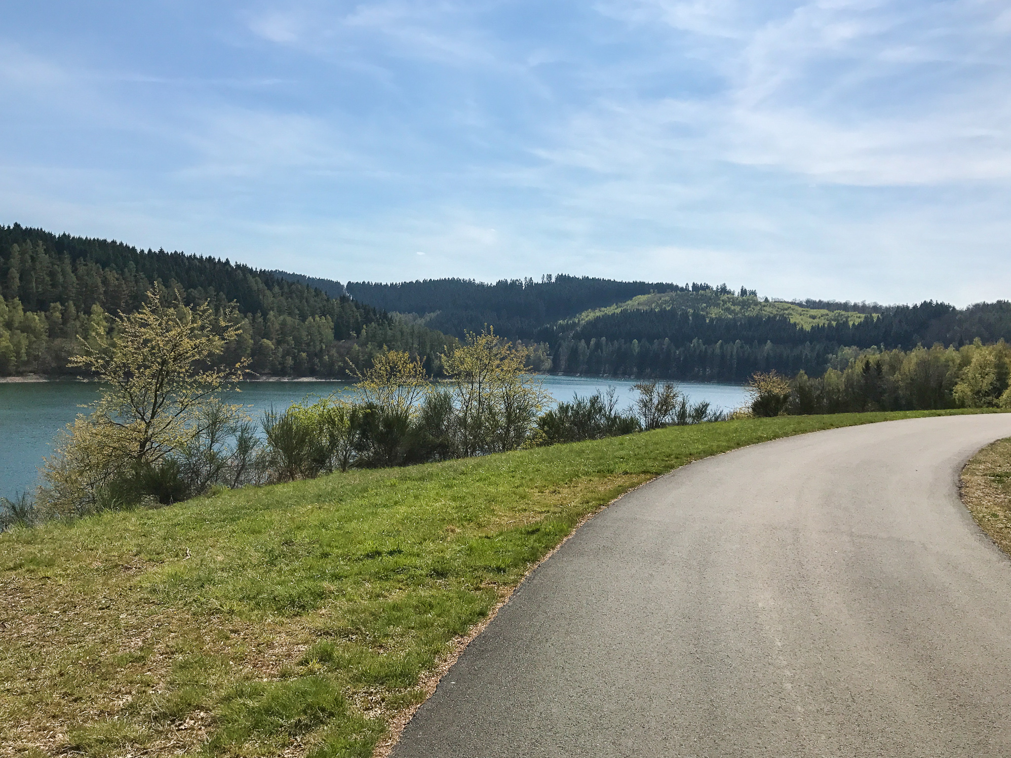 Montag Mittag, die Sonne scheint und es kribbelt in den Beinen. Auf dem Weg zur Talsperre überholte ich eine ältere Dame auf einem Rad. Sie winkte mich in einer Kurve an sich vorbei. Nett, danke!
