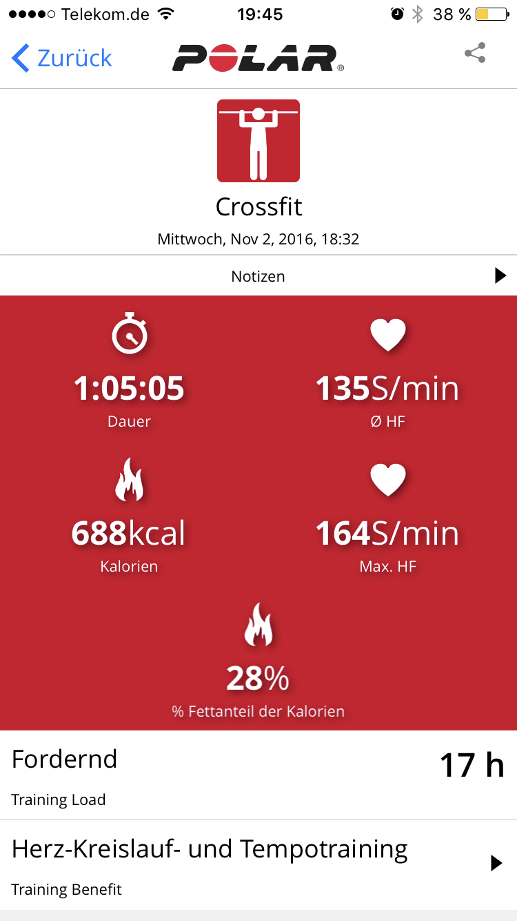 Draußen war nix mit guten Trainingswetter, also die Matte im Büro ausgebreitet und los konnte es gehen. Polar Brustgut umgeschnallt, da ich die Polar M400 mal gern mit dem Cross-Fit Setup ausprobieren wollte und schon waren die ersten 100 Jumping Jacks zum aufwärmen runter gespult.