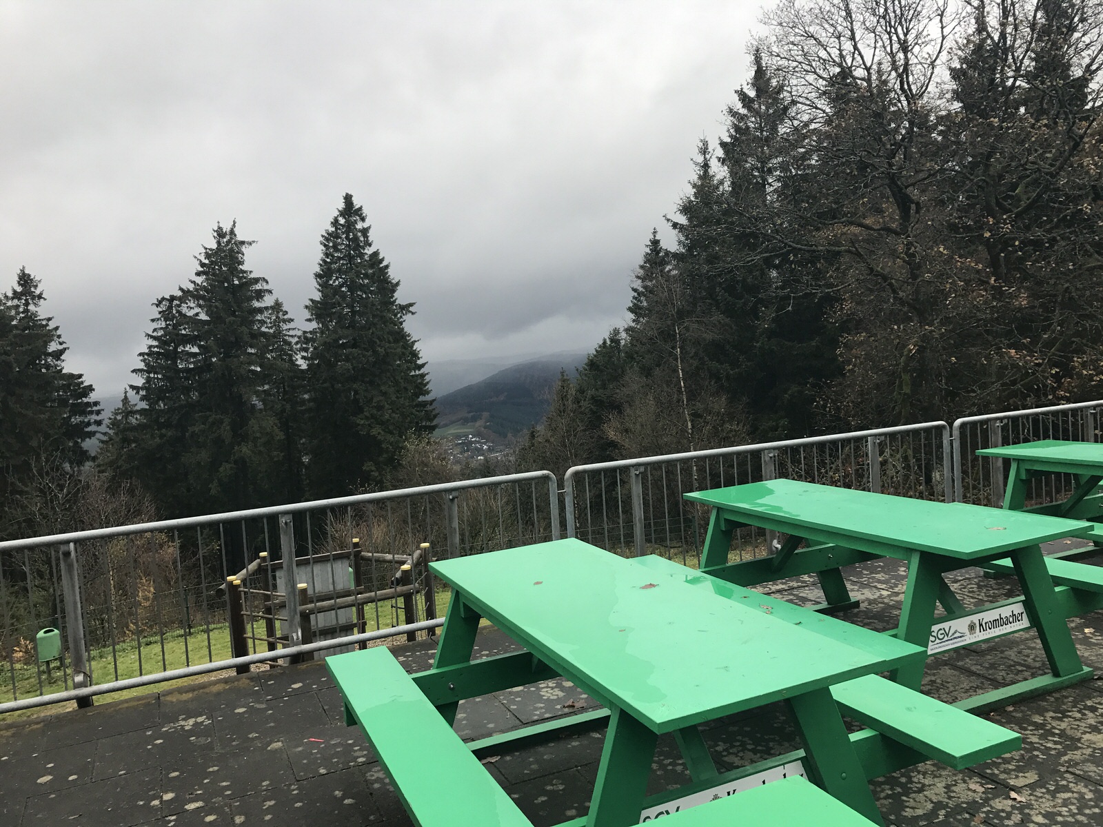 sollte auf der Route nicht fehlen, einfach weil dort viele schöne und enge Wege enden und ich mal sehen wollte, was man da so abfahren kann. Auf dem Weg vom Kindelsberg zum Altenberg, welcher wirklich total klasse ist, bekam ich aber richtig den A*** gewaschen. Eine Wolke platze auf und Regel mit teilweise leichtem Hagel prasselten volle Stärke auf mich runter. Hände nass, Kopp nass, Füße auch, Hintern sowieso schon. Ab dort merkte ich auch schön, wie stark nasse Hände eher auskühlen, als trockene.