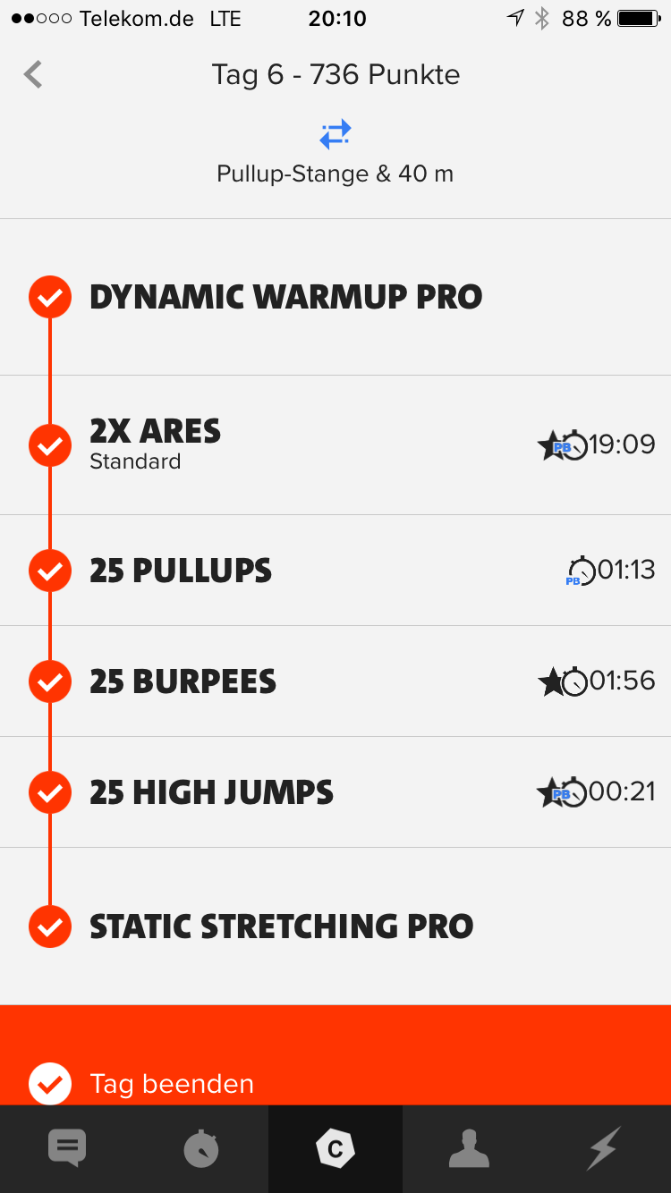 Mittwoch war der erste Tag der HellWeek und das frühere Aufstehen und quasi 2 Workouts am Morgen setzten mir doch etwas zu. Das besserte sich Donnerstag und Freitag ein wenig, richtig im Trott war ich ab Samstag. Man gewöhnt sich doch recht schnell an die höhere Belastung. Gewundert hat mich aber auch, dass einige Workouts dabei waren, in denen ich eine PB erzielt habe. Teilweise war es auch das zweite Training am Morgen. Es geht also immer noch was.