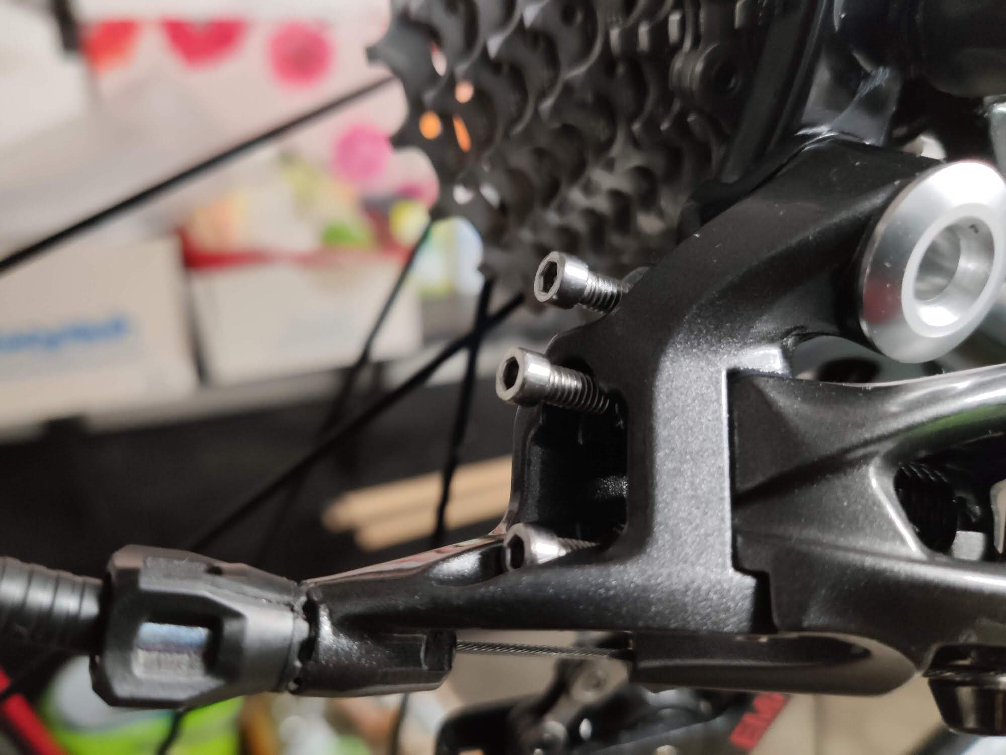 Bei der Montage musste ich ein Stück feste Pappe unter die Schelle legen, weil der Anlötpunkt am Rad es sonst nicht möglich gemacht hätte, den Umwerfer gerade zu montieren. Damit kann ich leben, es ist halt ein alter Rahmen. Einzustellen war der Umwerfer aber echt easy. Viel einfacher als der Shimano: High und Low eingestellt, und wohl wissentlich einen Zugadjuster inline mitbestellt. Somit kann ich die Zugspannung vorn am Lenker noch justieren und den Umwerfer genauer einstellen.