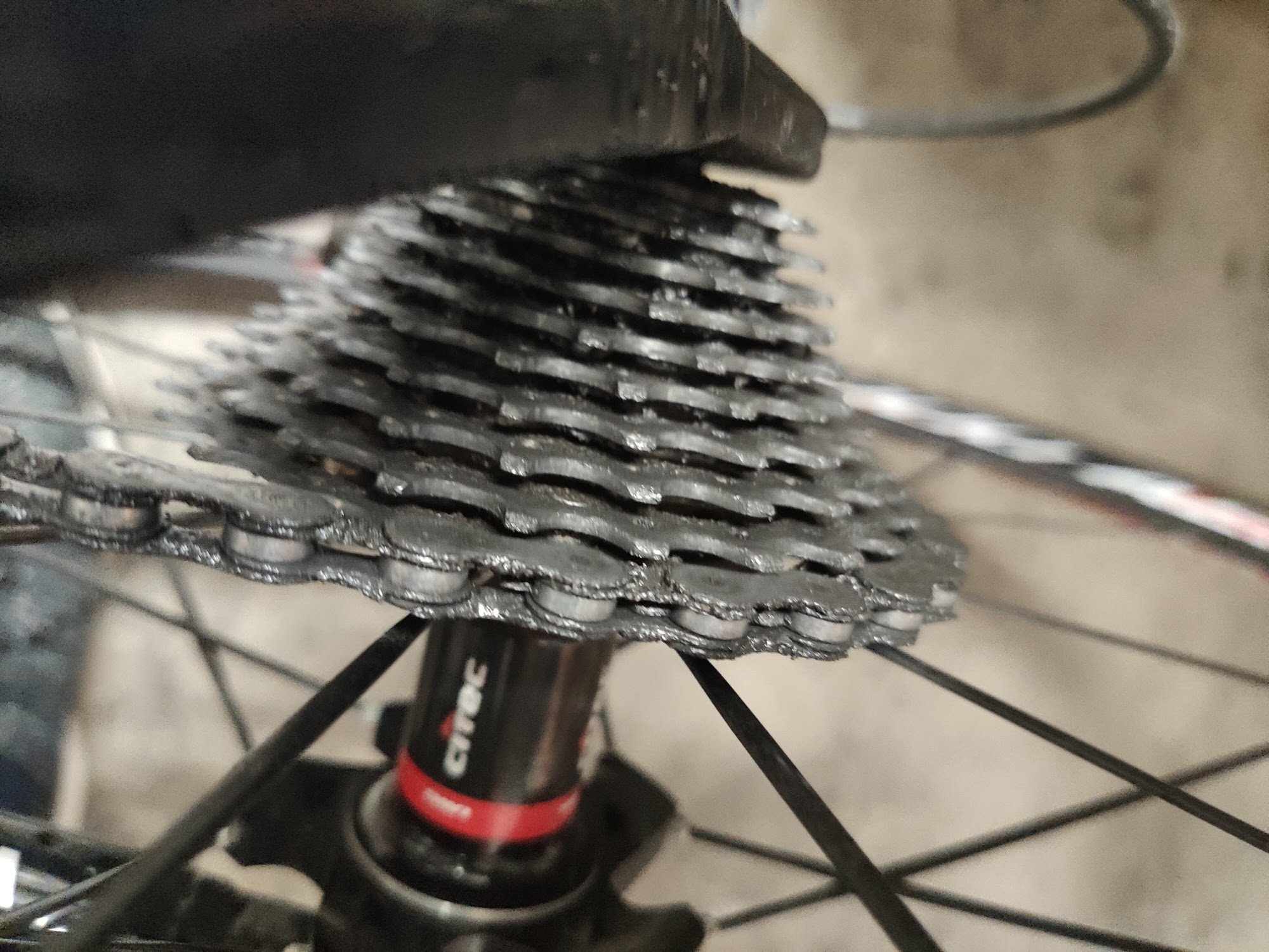Als erstes musste das alte Öl runter. Dazu habe ich das Hinterrad herausgenommen, die Ritzel geputzt und alles entfettet. Und da das Rad schon einmal ausgebaut war, wollte ich mir mal den Aufbau des Lagers anschauen. Technisch bin ich sicherlich nicht unbegabt, aber hier fehlte es noch an passendem Werkzeug: kurzerhand die ersten wichtigen Tools bestellt.